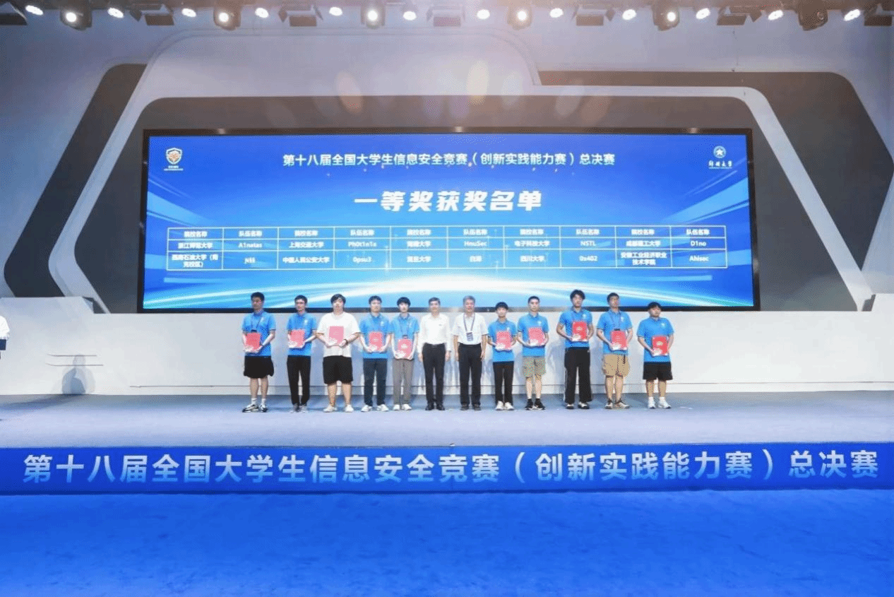 本站讯(通讯员 郑丹婷)7月19日至20日,第十八届全国大学生信息安全竞赛(创新实践能力赛)总决赛线下赛在郑州举行。best365中国官方网站网络空间安全学院(密码学院)信息安全专业和密码科学与技术专业的本科生组成的HnuSec战队荣获一等奖。7月19日至20日,第十八届全国大学生信息安全竞赛(创新实践能力赛)总决赛线下赛在郑州举行。这是一等奖颁奖典礼现场。据悉,全国大学生信息安全竞赛属于国家级A类竞赛,已连续举办18届。本届赛事由教育部高等学校网络空间安全专业教学指导委员会主办,...