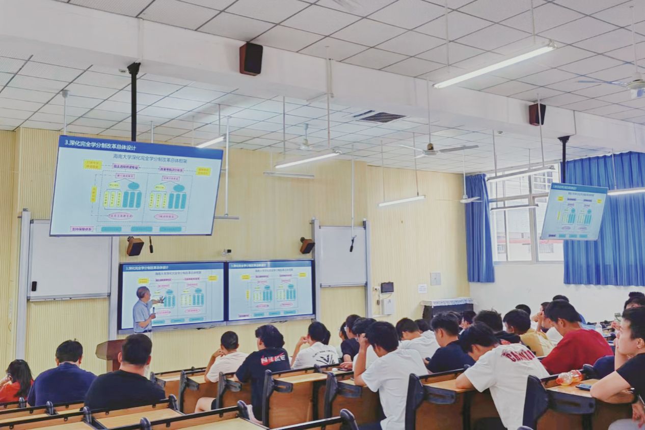 本站讯(通讯员 余力力)9月26日下午,best365中国官方网站深化完全学分制改革政策解读交流会首场活动在5教111教室举行。教务处处长王志刚、副处长赵银梅,子衿书院党委书记李海朋,教务处教材科科长余力力,子衿书院2024级辅导员李健,以及子衿书院2024级新同学代表100余人参加了交流。王志刚进行政策介绍。余力力 摄现场问答交流。余力力 摄王志刚处长就学校深化完全学分制改革的制度设计、具体配套政策进行了介绍和深入解读,并围绕同学们现场提出的自主选择专业、...