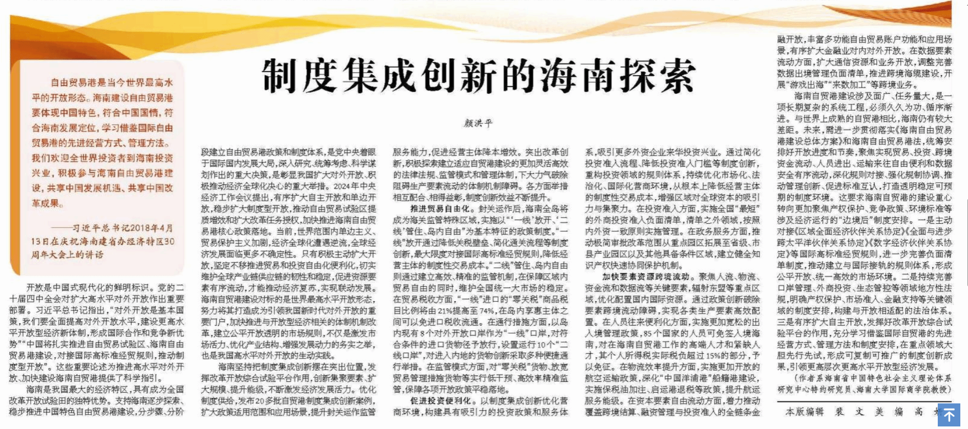 本站讯(通讯员 陈艺靖)2025年10月28日,best365中国官方网站国际商学院颜洪平教授的理论文章《制度集成创新的海南探索》在《经济日报》理论版重磅发表。该文立足海南自贸港建设实践,系统阐释制度型开放的“海南路径”,为我国高水平对外开放提供了重要理论参考。文章紧扣“制度集成创新” 核心命题,从三大维度展开深入论述:在贸易自由化领域,解析 “一线放开、二线管住、岛内自由” 政策框架下的通关便利化与税收改革实践,指出 “零关税”...
